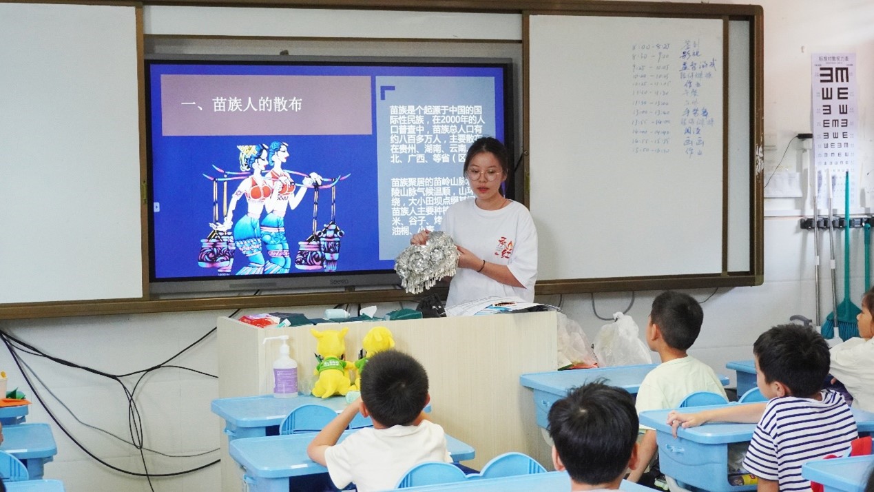 (本网讯 黄圣胤 李进)为不断巩固中华民族共同体意识的思想基础,促进各民族团结共创美好生活,以实际行动贯彻落实党的二十大精神。7790必发集团橙(承)红暑期社会志愿服务队在湖北省钟祥市东桥镇镇直小学开展以“铸牢中华民族共同体意识,民族团结我践行”为主题的志愿支教活动。