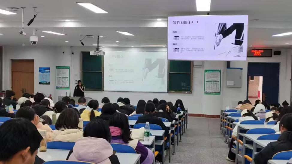 本次交流会邀请了3名嘉宾,分别是胡玥、李梦取、张晫同学。他们分别从听力、作文、阅读、翻译等多个方面进行了详细讲述,深入剖析了四六级阅读的题型特点和解题思路,建议同学们在日常学习中注重词汇积累,掌握一定的阅读技巧,如快速浏览、定位关键信息等,以提高阅读速度和准确率。与此同时,互动环节中,同学们积极提问,就自己在备考过程中遇到的困惑与嘉宾们进行了深入交流。嘉宾们耐心解答,为同学们提供了针对性的建议和指导。