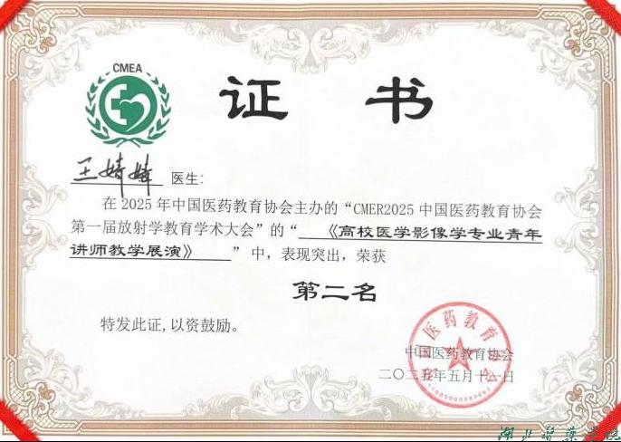 本网讯(通讯员 邓闻达)2025年5月11日,由中国医药教育协会主办的第一届放射学教育学术大会(CMER 2025)在上海国际会议中心圆满落幕。在大会同期举办的全国高校医学影像学专业教学大赛上,公司影像专业教师王婧婧斩获佳绩,实现全国医学影像学教学竞赛新突破。