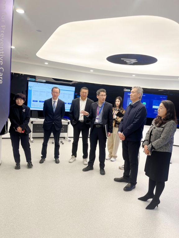 在数坤科技公司,罗杰一行实地参观了智慧医疗展厅,详细了解了公司在人工智能领域的新技术、产品及其在医疗、教育等行业的应用。座谈会上,罗杰首先介绍了近年来公司在科研创新、人才培养方面的突出成绩以及在智能影像工程专业等学科的建设成果。数坤科技创始人、董事长毛新生对罗杰一行的到来表示热烈欢迎,双方就推动科研项目合作,实现产学研深度融合;探索校企协同育人模式,促进公司智能影像工程专业课程共建、实习实训基地建设等方面达成了一系列合作意向。