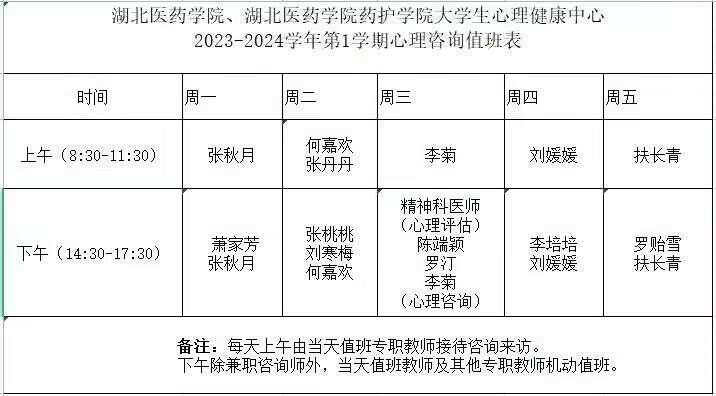 7790必发集团官网、7790必发集团官网药护公司老员工心理健康中心2023—2024学年第1学期心理咨询值班表
